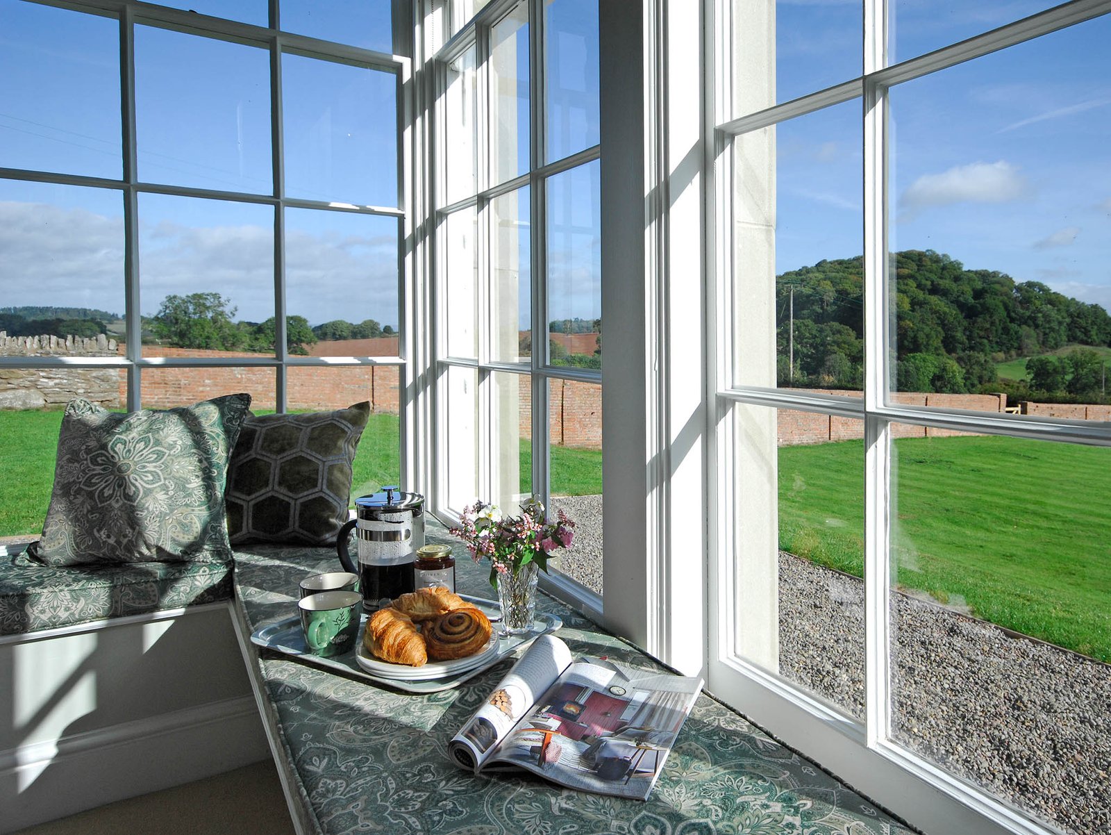 With plenty of space for our group in individually designed rooms, the house offers the comfort and calm needed to truly step away from the outside world. Beyond the walled garden, over 200 acres of rolling farmland and ancient woodland wait to be explored — the kind of landscape that makes it easy to leave everything else behind.